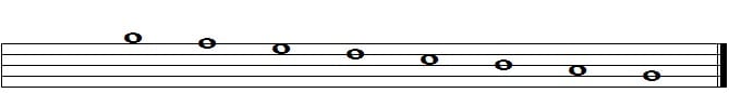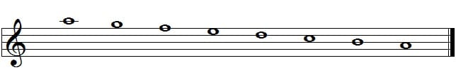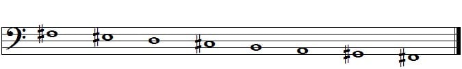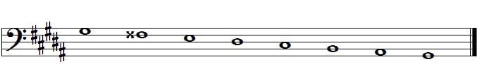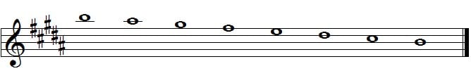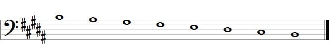 B minor melodic descending scale, notice the notes stay as per key signature.