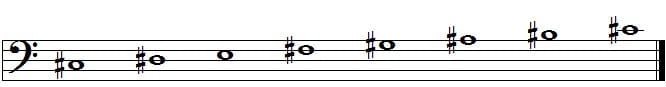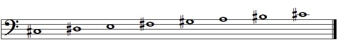 Above is the E minor harmonic scale, notice the 7th note is raised a semitone.