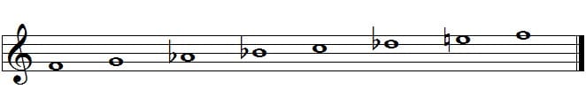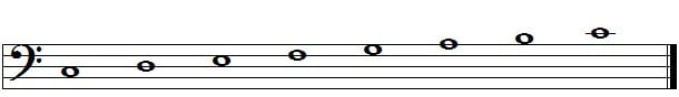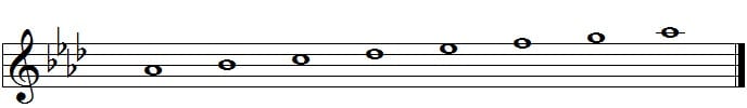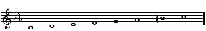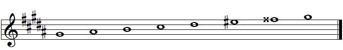 B minor melodic scale ascending, notice the 6th and 7th notes are raised a semitone.