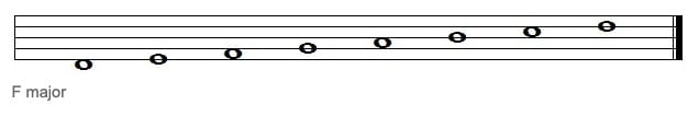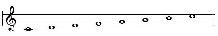 A simple scale is made up of eight notes placed on a stave. The notes are formed on lines and spaces.