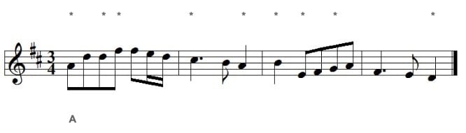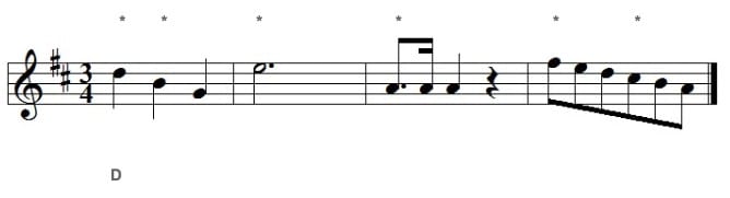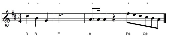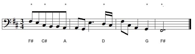 Give the letter name of each of the notes marked *, including the sharp or flat sign where necessary. The first note is given.
